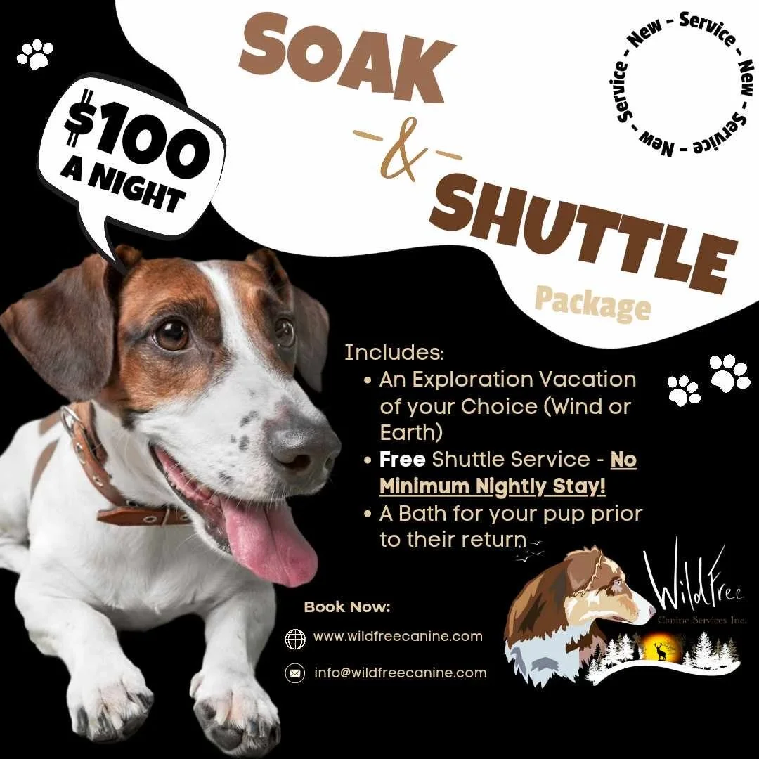 Want your pup to come home fresh, clean, and looking their best after their WildFree Exploration Vacation? We’ve partnered with Wiggles & Washes in Calgary to make it easy. At the end of their stay, your dog can be shuttled directly to Wiggles & Washes for a bath, tidy, or full groom… then you’ll pick them up from there, fresh and ready to go.